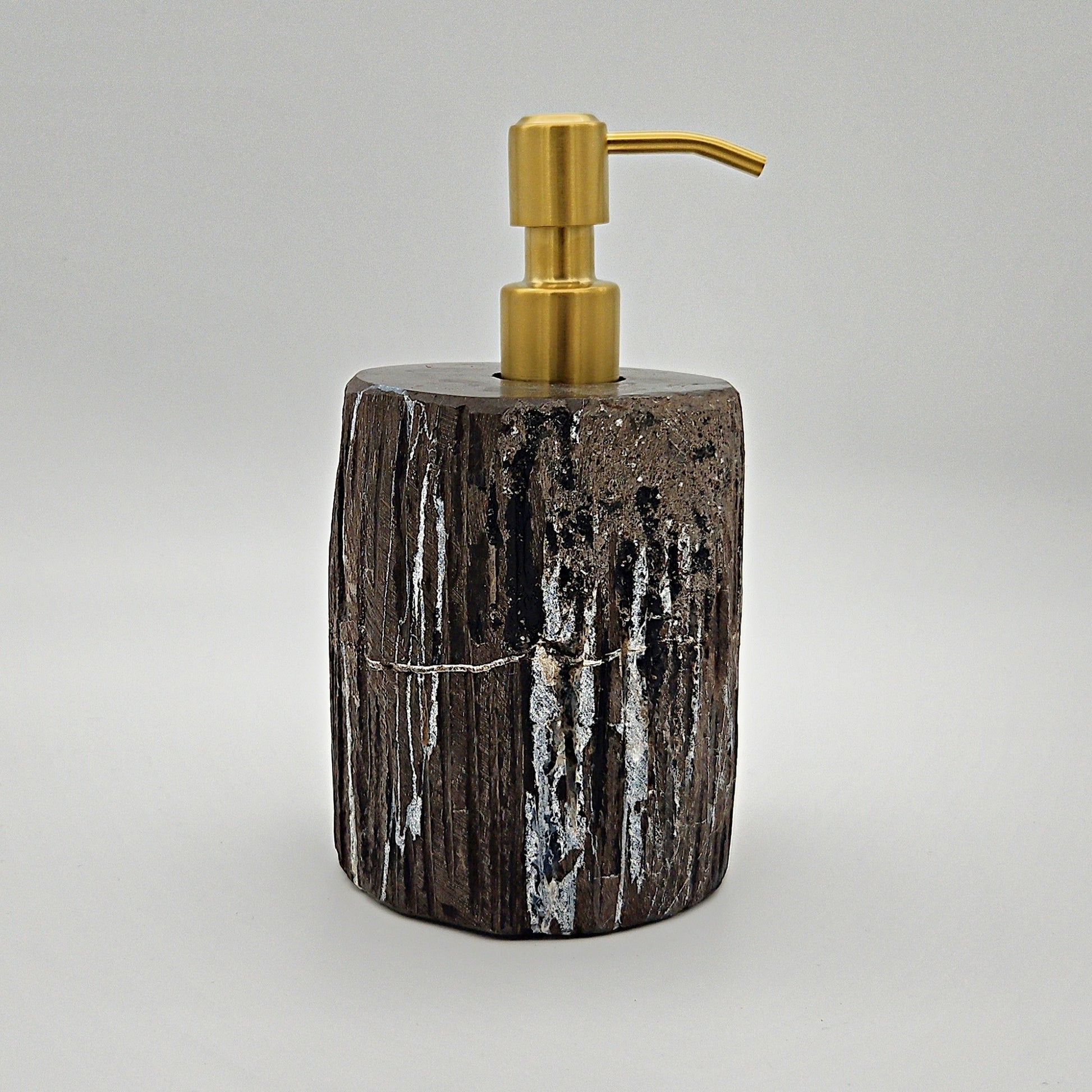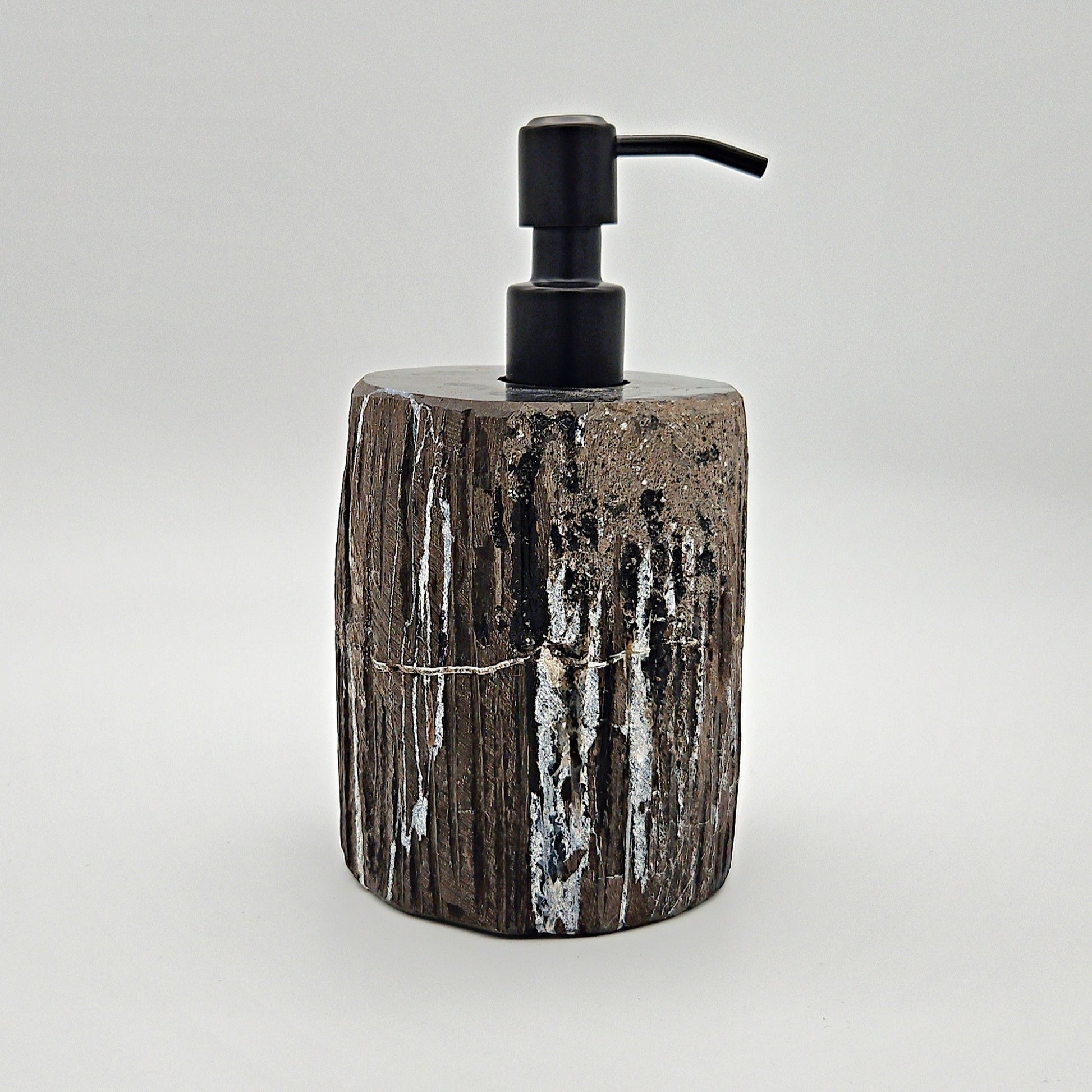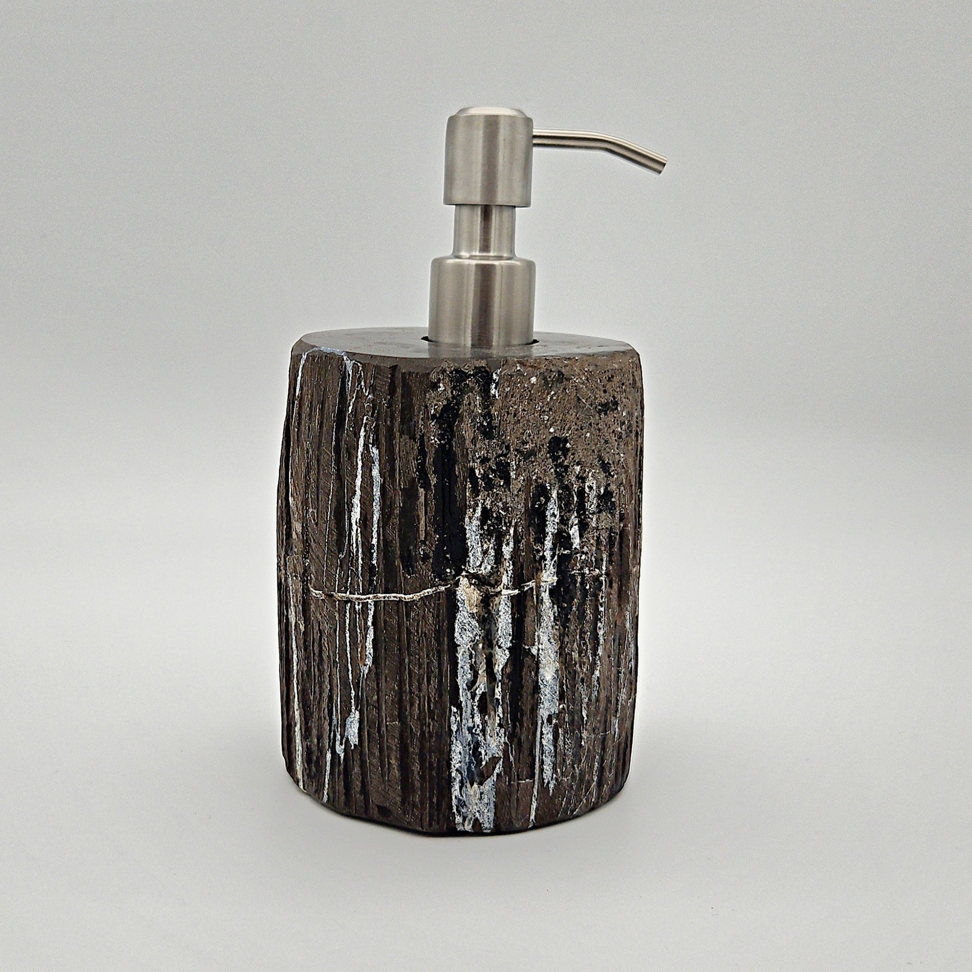 Denne sæbedispenser er skabt af millioner af år gammelt forstenet træ – formet af naturen, forfinet i hånden og udvalgt for sin unikke karakter. Hvert stykke findes kun én gang.