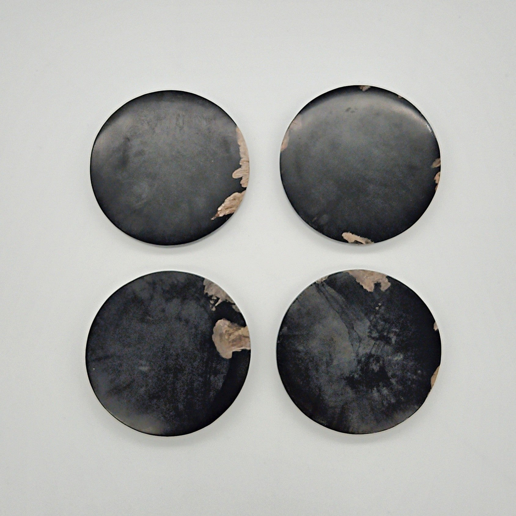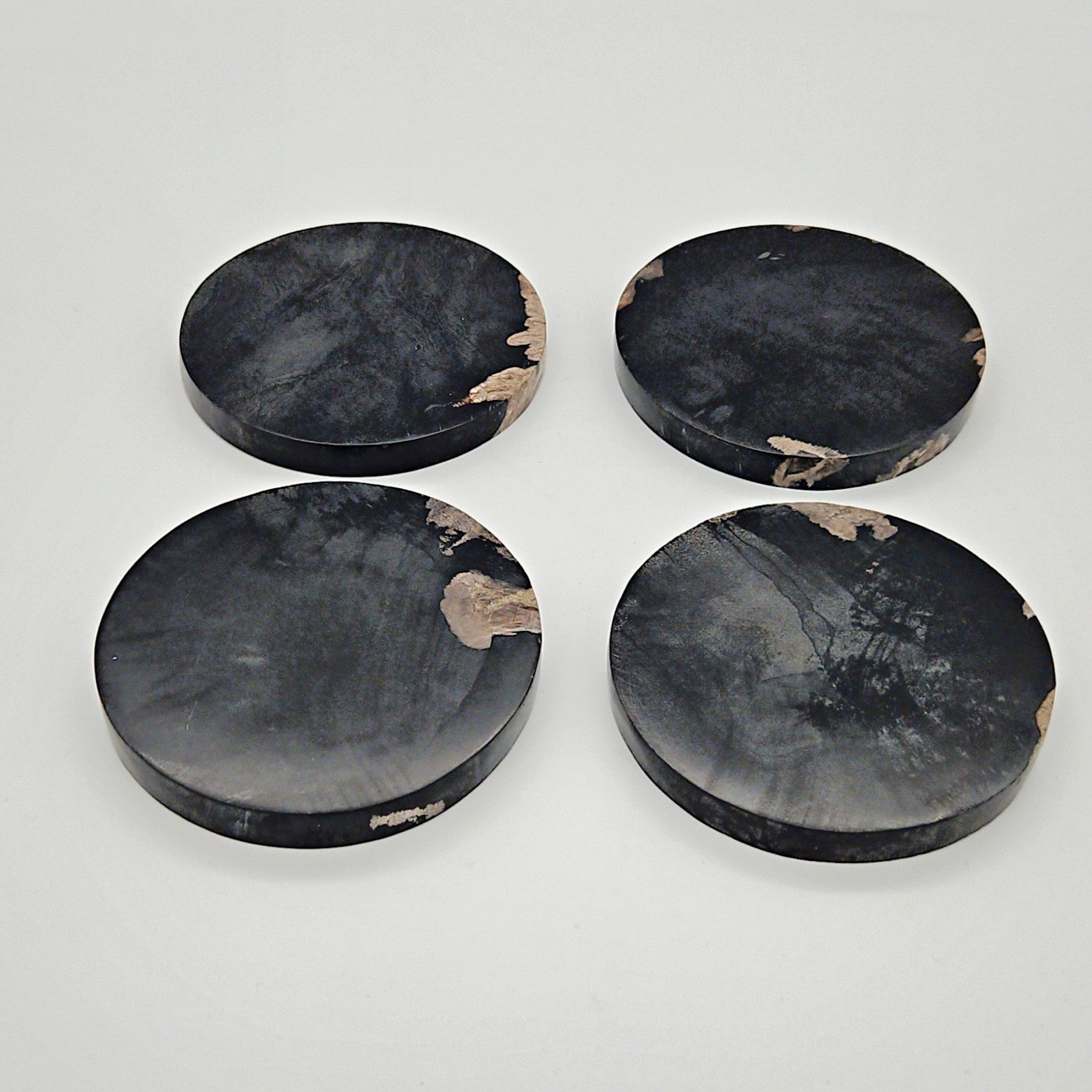 Eksklusive bordskånere i forstenet træ – sæt af 4 unika