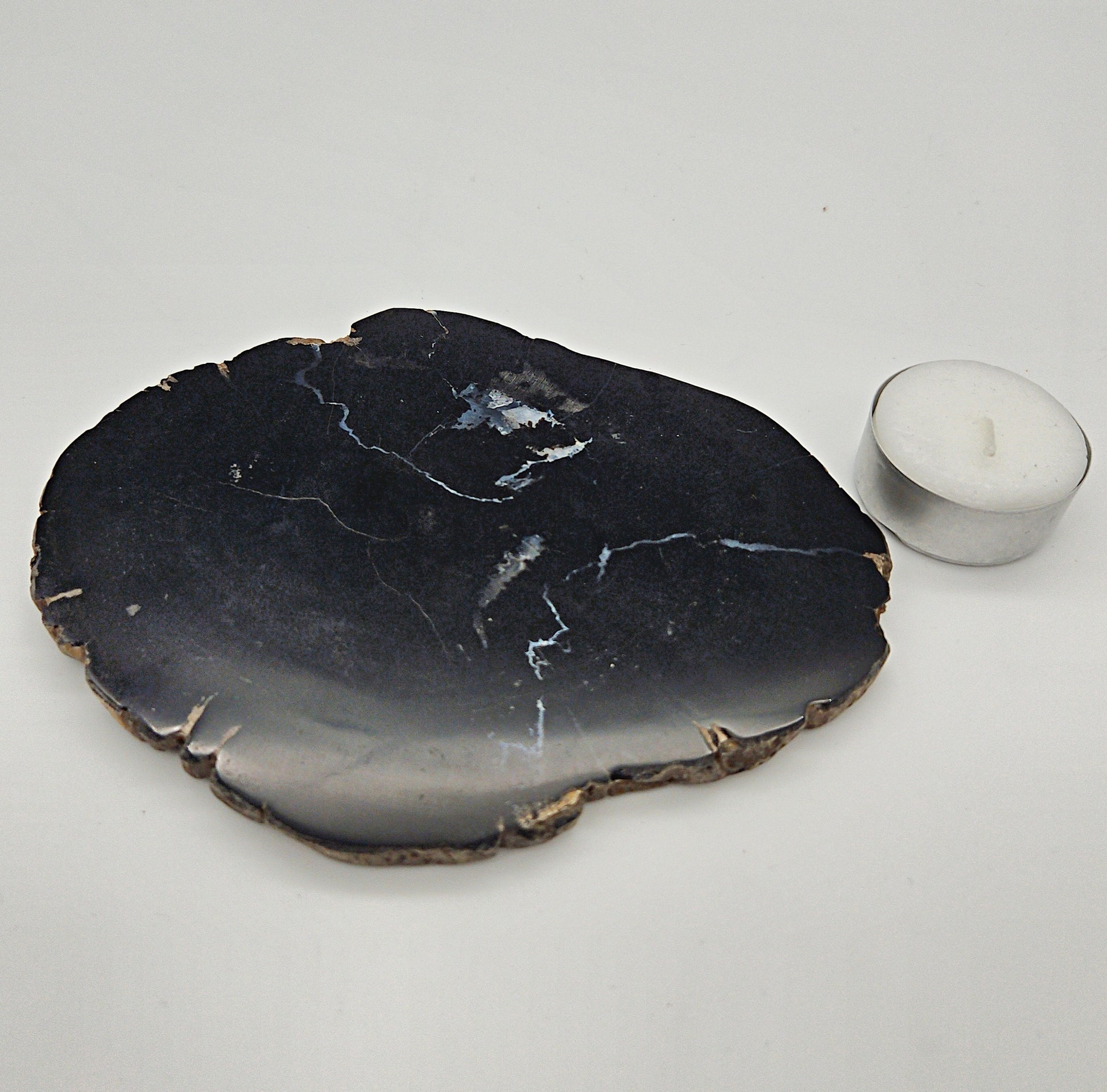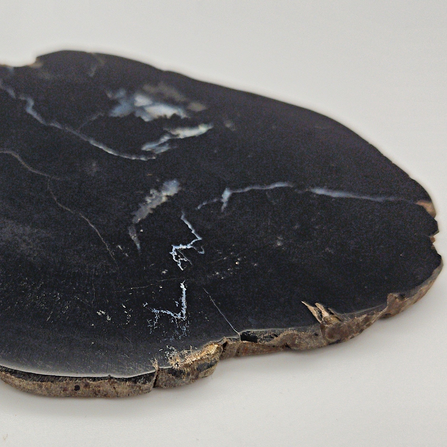 Dette stykke er skabt af naturen selv. Den organiske form og de rå kanter er bevaret, så materialets naturlige skønhed står frem uden kompromis. Overfladen er let håndpoleret for at fremhæve dybden i farven, mens strukturen og formen bevarer sit skulpturelle udtryk.