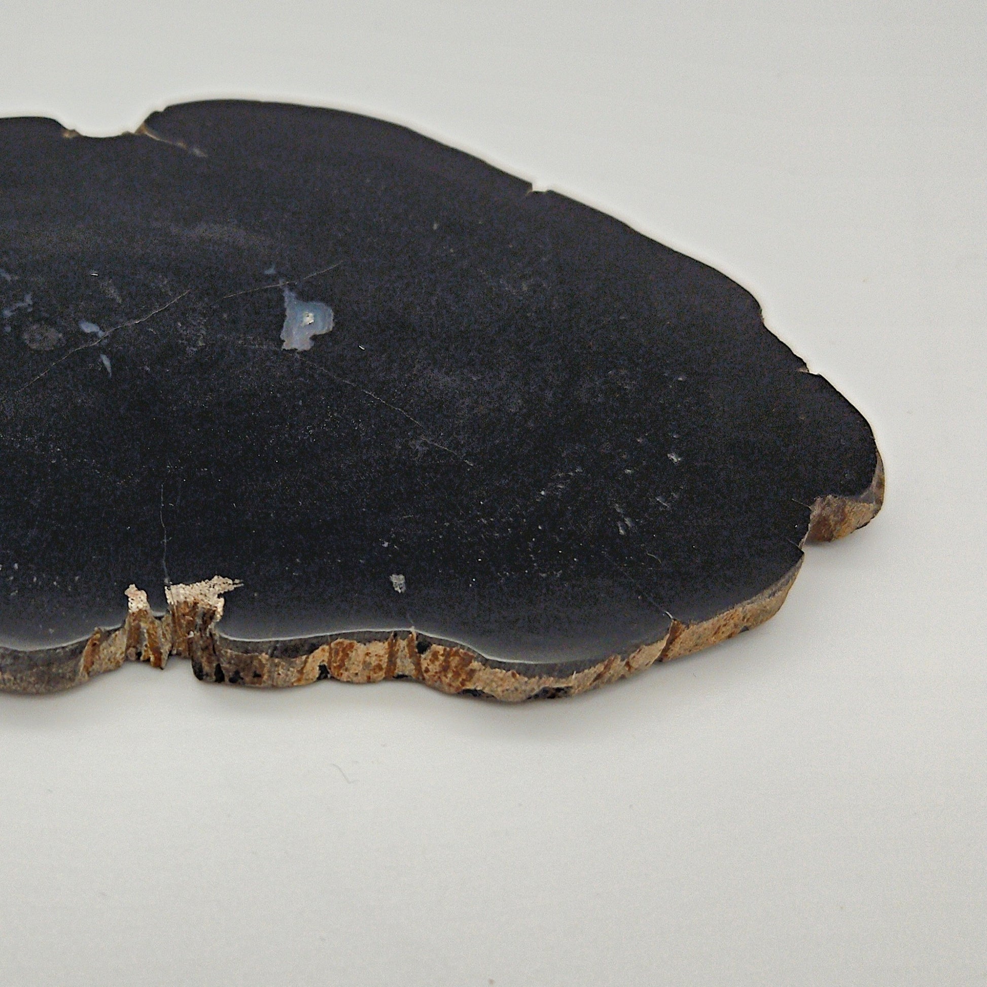 Dette stykke er skabt af naturen selv. Den organiske form og de rå kanter er bevaret, så materialets naturlige skønhed står frem uden kompromis. Overfladen er let håndpoleret for at fremhæve dybden i farven, mens strukturen og formen bevarer sit skulpturelle udtryk.