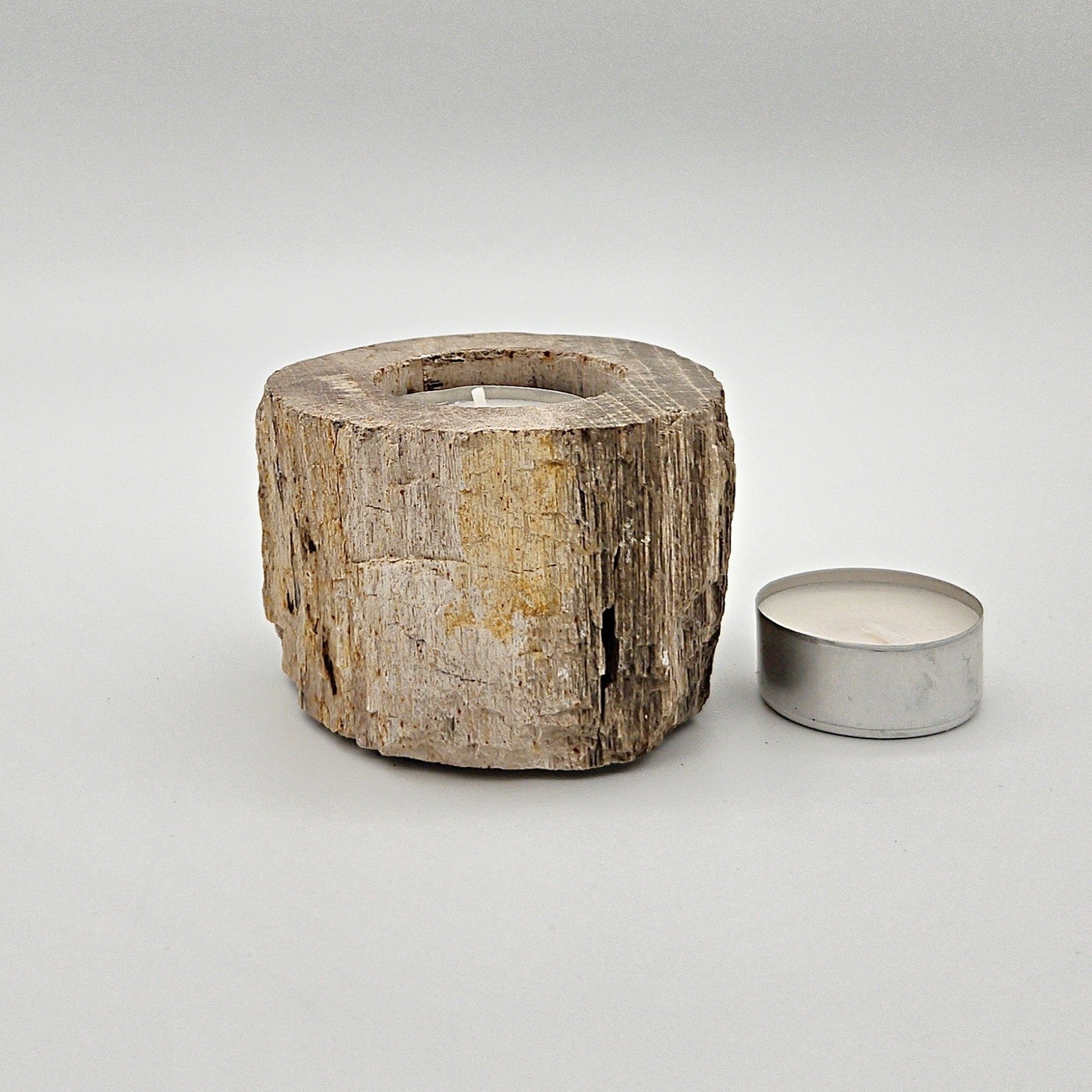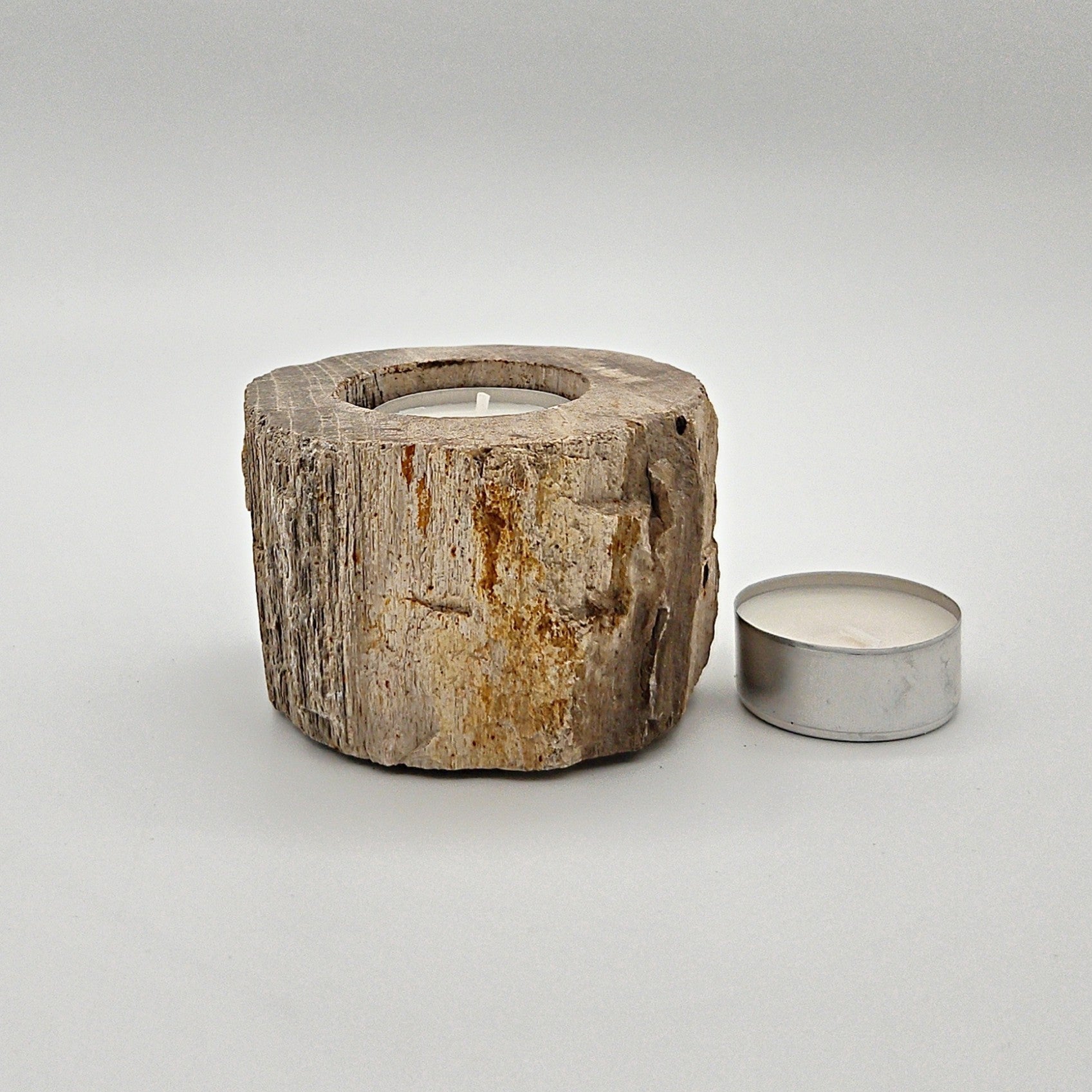 Hver fyrfadsstage er et unika – skabt af ægte naturmateriale og nænsomt forarbejdet. Den rå yderside bærer sporene af naturens kraft og oprindelse, mens den polerede top skaber en elegant kontrast, hvor lyset reflekteres smukt.